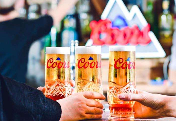 Our bottles, cans and glasses all feature thermo ink which turns blue when Coors is mountain cold. It's our unique Cold Beer Guarantee. -